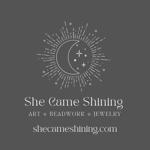 Aaniin, Boozhoo, Tareyn Johnson ndizhnikaaz. I am an Anishnaabekwe (Ojibwe woman) from Georgina Island First Nation in Canada. I'm an artist and academic, specializing in custom work. "She Came Shining" is the translation of my daughter's spirit name.