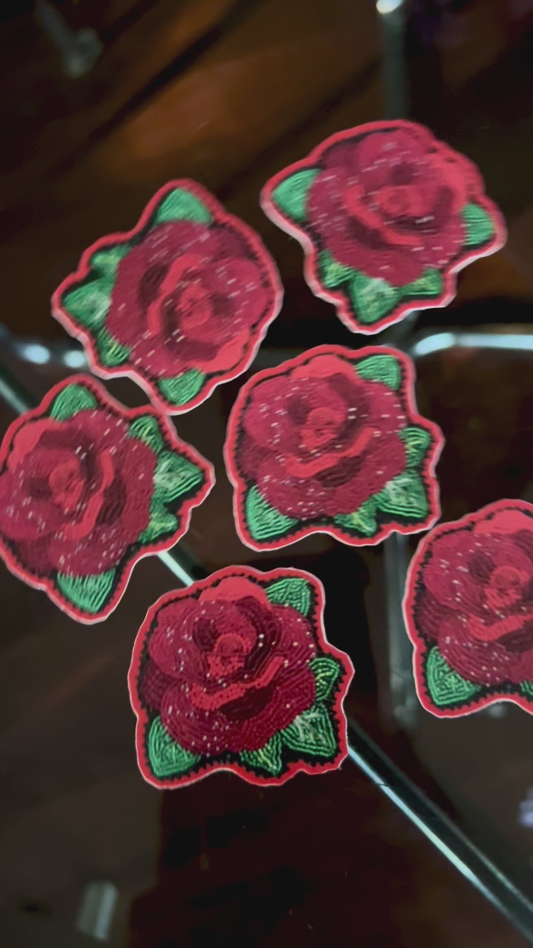 This is a reproduction sticker of original beadwork in a 1.2" x 2" format