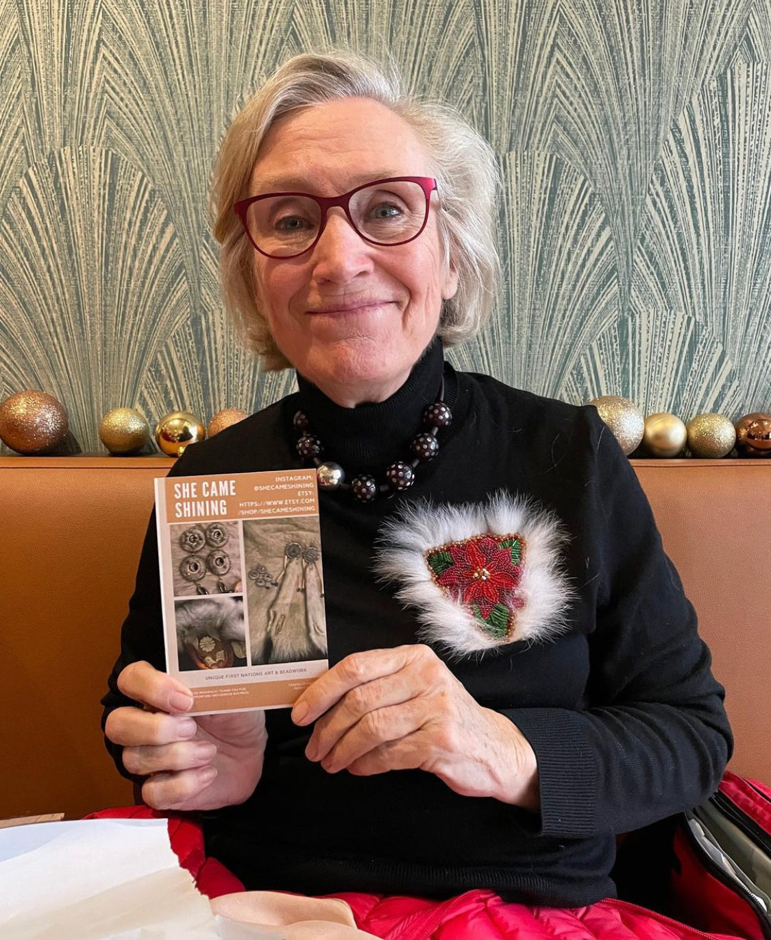 Minister Carolyn Bennett Custom Beaded Poinsettia with White Fox Fur