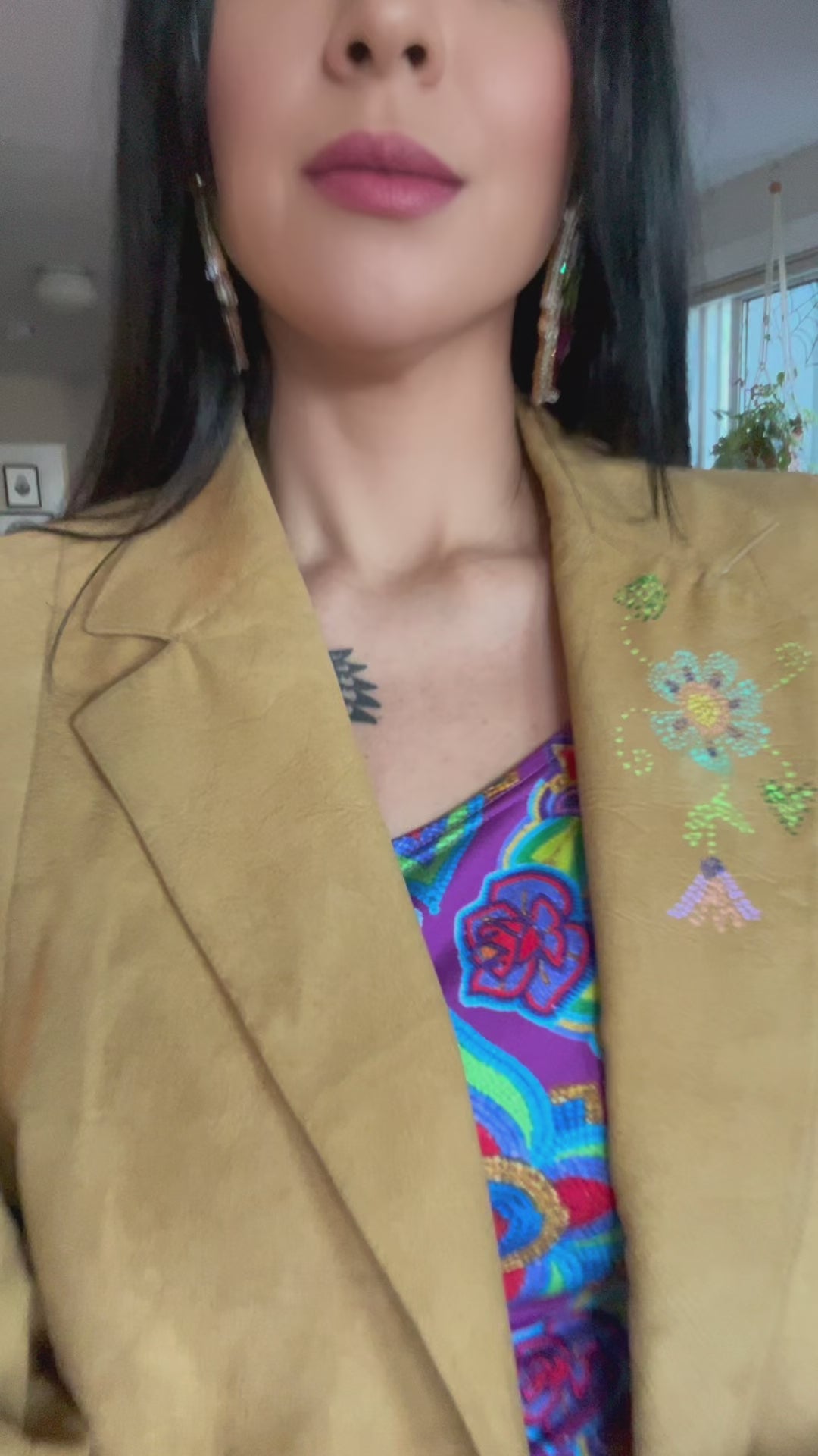 Vintage Upcycled Suede Skirt Suit with Metis Dot Floral Detail